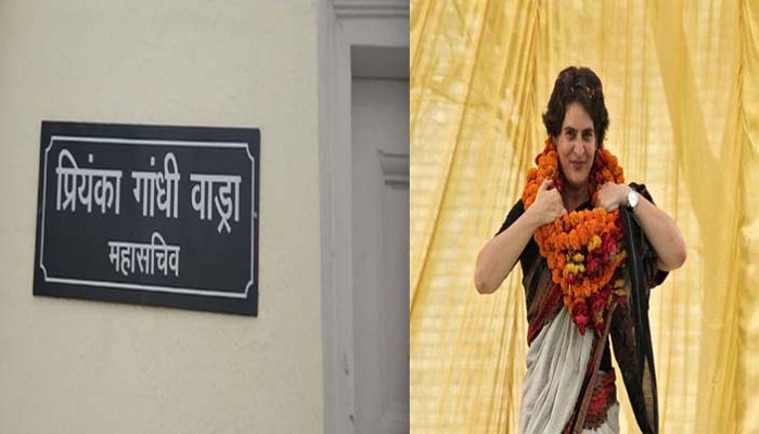 नई दिल्ली। कांग्रेस अध्यक्ष राहुल गांधी की बहन प्रियंका गांधी वाड्रा ने मंगलवार यानी आज आधिकारिक तौर पर कांग्रेस महासचिव का कार्यभार संभाल लिया है। कांग्रेस मुख्यालय में प्रियंका को आवंटित हुए कमरे के बाहर उनके नाम का नेमप्लेट लगा दिया गया।