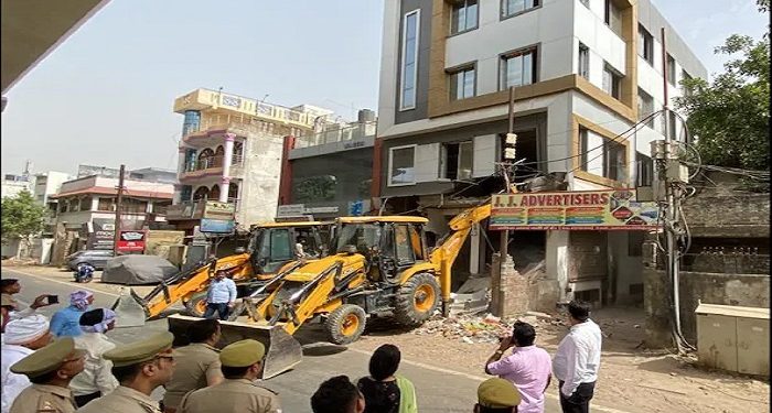 कानपुर: 3 जून को जुमे की नमाज के बाद कानपुर (Kanpur) में भड़की हिंसा का मास्टर माइंड जफर हयात (Zafar Hayat) के करीबी के खिलाफ शनिवार को प्रशासन ने बड़ी कार्रवाई की। नगर निगम की टीम ने अतिक्रमण विरोधी अभियान चलकार स्वरूप नगर मोहम्मद इश्तियाक की अवैध इमारत पर बुलडोजर (Bulldozer) चला दिया। नगर निगम के मुताबिक नक्शे से ज्यादा निर्माण होने के कारण बिल्डिंग को तोड़ दिया गया।