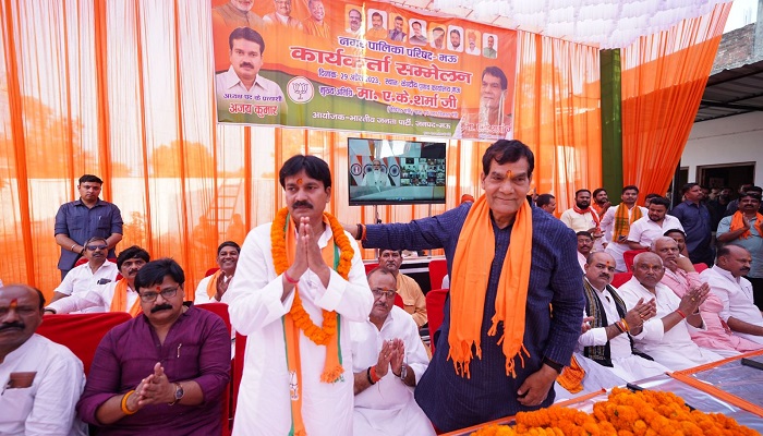 उन्होंने (AK Sharma) कहा कि केंद्र और प्रदेश की सरकार के साथ ही नगर पालिका में भी हमारा अध्यक्ष होगा तो हमारे नगर का चहुंमुखी विकास और तेजी से होगा। कहाकि भाजपा कार्यकर्ताओं की पार्टी है, हमारी सरकार अंत्योदय के उत्थान को ध्यान में रखकर योजनाओं को धरातल पर उतारती है। यह हमारा सौभाग्य है की मऊ पर प्रधानमंत्री और मुख्यमंत्री की बराबर नजर रहती है। भाजपा की सरकार जनहित के कार्य को प्राथमिकता में रखती है। आवास, शौचालय, परिवहन, कानून व्यवस्था, बिजली सप्लाई हर वो मांग जो आम जनमानस के सुख—सुविधा के लिए जरूरी है सरकार पूरा कर रही है। हमारा पूरा प्रयास होगा की मऊ नगर देश के नक्शे पर चमकने लगे और यहां के नागरिकों को हर उचित सुविधा मिलने लगे।