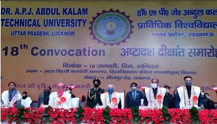 समारोह में प्रदेश की राज्यपाल आनंदी बेन पटेल, कुलपति प्रो. विनय कुमार पाठक, प्रमुख सचिव प्राविधिक शिक्षा राधा एस चौहान, कुलसचिव नन्द लाल सिंह, प्रति कुलपति प्रो. विनीत कंसल, विद्या परिषद एवं कार्य परिषद के सदस्य तथा डीन उपस्थित थे।