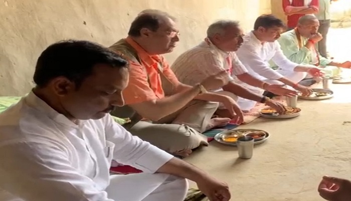 इस बीच जब दोपहर भोजन का समय हुआ तो ग्राम पंचायत डेढ़ प्रसार से बूथ अध्यक्ष रजनी त्रिपाठी के आवास पर मोहसिन रजा कार्यकर्ताओं के साथ जमीन पर बैठ गए और उन्हें थाली में भोजन परोसा गया।