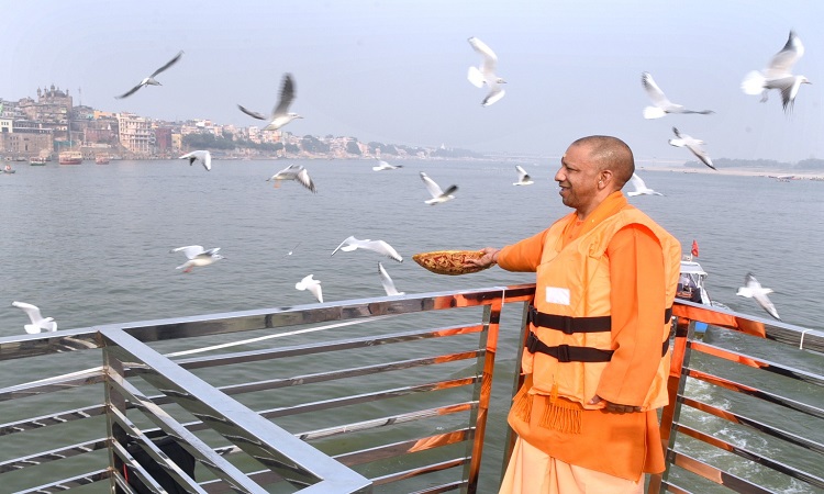 मुख्यमंत्री योगी आदित्यनाथ (CM Yogi) श्री काशी विश्वनाथ मंदिर में दर्शन करने के बाद क्रूज़ से सतुआ बाबा गोशाला डोमरी में चल रहे श्रीशिव महापुराण कथा में शामिल होने जा रहे थे, इस दौरान उन्होंने साइबेरियन पक्षियों को दाना खिलाया।