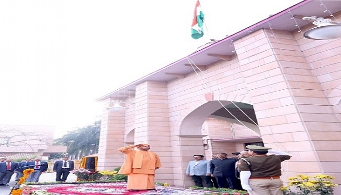 लखनऊ। मुख्यमंत्री योगी आदित्यनाथ (CM Yogi) ने 74वें गणतंत्र दिवस (Republic Day) के अवसर पर अपने सरकारी आवास पांच कालिदास मार्ग पर तिरंगा फहराया और प्रदेशवासियों को शुभकामनाएं भी दीं। इस अवसर पर उन्होंने प्रदेशवासियों से उत्तर प्रदेश के विकास में सकारात्मक भूमिका के निर्वहन की अपील की।