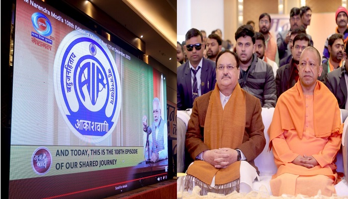लखनऊ। बीजेपी राष्ट्रीय अध्यक्ष जगत प्रकाश नड्डा (JP Nadda) के साथ मुख्यमंत्री योगी आदित्यनाथ (CM Yogi) ने रविवार को प्रधानमंत्री नरेन्द्र मोदी के मन की बात (Mann ki Baat) के 108वें संस्करण को सुना। ट्रांसपोर्ट नगर स्थित एक होटल में मन की बात का सजीव प्रसारण किया गया। प्रधानमंत्री ने अपने मन की बात में 2023 की उपलब्धियों की चर्चा की। वहीं उन्होंने अंतरराष्ट्रीय मिलेट्स वर्ष में विशेष रूप से उत्तर प्रदेश के स्टार्टअप्स की चर्चा करते हुए इसे लाइफस्टाइल हेल्थ इनोवेशन की दिशा में बड़ा कदम बताया।