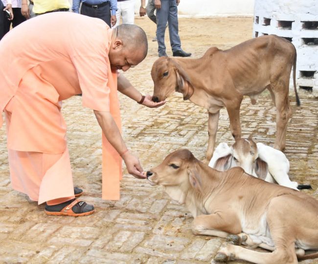 सीएम (CM Yogi) ने की गोसेवा, गोवंश को खिलाया गुड़