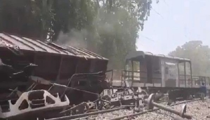 मालगाड़ी का आखिरी वैगन घिसटता हुआ रेलवे स्टेशन तक पहुंचा
