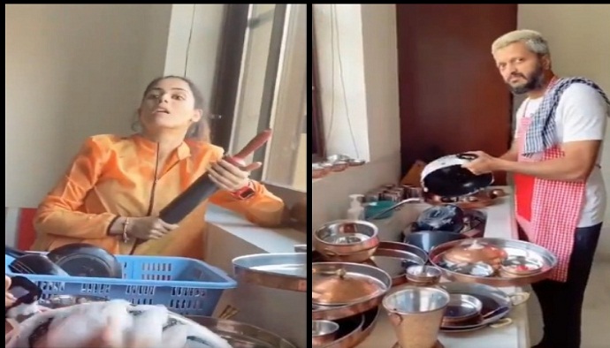 वीडियो में रितेश देशमुख अपने घर के बर्तन धोते नजर आ रहे हैं