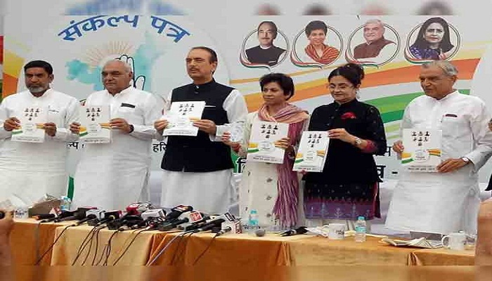नई दिल्ली। हरियाणा विधानसभा चुनाव 2019 के लिए कांग्रेस ने शुक्रवार यानी आज अपना घोषणा पत्र जारी कर दिया है। घोषणा पत्र में पार्टी ने समाज के हर वर्ग का ख्याल रखा है। कांग्रेस ने सरकार बनने पर 24 घंटे में कर्ज माफी का वादा किया है। सभी वर्गों के बीच भाईचारा कायम करना ही पार्टी की प्राथमिकता है।