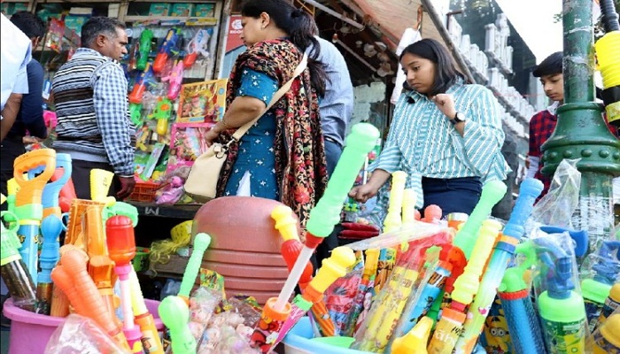 रंग-पिचकारी विक्रेता राजेंद्र सिंह का कहना है पहले चीन से आने वाली पिचकारी महंगी हुई। जिसने खरीदारी प्रभावित की। अब होली मिलन निरस्त होने से रंग-गुलाल की बिक्री भी चौपट हो चुकी है।