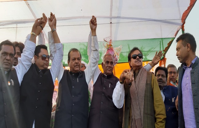 धनबाद। फिल्म अभिनेता व कांग्रेस नेता शत्रुघ्न सिन्हा ने गुरुवार को चुनावी सभा को संबोधित करते हुए कहा कि बीजेपी सरकार की गलत नीतियों के कारण उन्होंने सबसे पहले पार्टी छोड़ी।