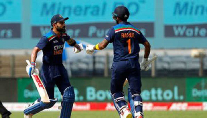 नई दिल्ली। पुणे में खेले जा रहे दूसरे वनडे में लोकेश राहुल (Lokesh Rahul) (108) के शानदार शतक जमाया है। साथ ही कप्तान विराट कोहली (66) तथा युवा ऋषभ पंत (77) के आतिशी अर्धशतकों से भारत ने इंग्लैंड के खिलाफ शुक्रवार को दूसरे वनडे में 50 ओवर में छह विकेट पर 336 रन का विशाल स्कोर बना लिया है।