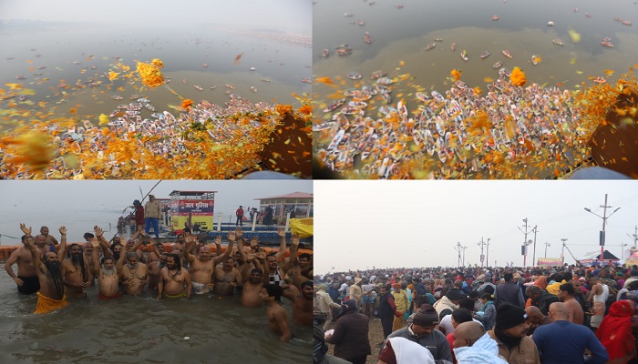 त्रिवेणी में डुबकी लगाकर पावन रेत पर दान, पुण्य और पूजा के लिए लीन श्रद्धालुओं पर पुष्पों की पंखुड़ियों की वर्षा ने पूरे संगम क्षेत्र को अकल्पनीय अनुभूति से सराबोर कर दिया । साधु, संत और श्रद्धालु योगी सरकार द्वारा माघ मेला के आयोजन को दिए गए इस भव्य और दिव्य स्वरूप के लिए उन्हें साधुवाद दे रहे थे ।