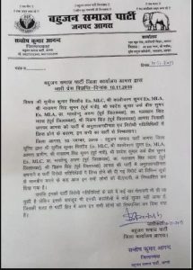 लखनऊ। बहुजन समाज पार्टी की अध्यक्ष मायावती ने रविवार को आगरा और अलीगढ़ जोन के लंबे समय तक कॉर्डिनेटर रहे पूर्व एमएलसी सुनील चित्तौड़ सहित सात नेताओं को बाहर निकाल दिया है। इन सब पर पार्टी विरोधी गतिविधि और अनुशासनहीनता के कारण यह कार्रवाई की गई है।