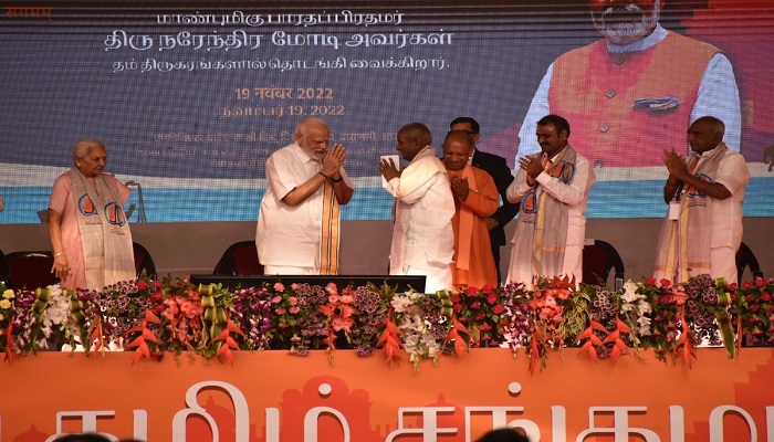 वाराणसी। प्रधानमंत्री नरेन्द्र मोदी (PM Modi) ने शनिवार को बीएचयू के एम्फीथियेटर ग्राउंड में काशी तमिल संगमम का विधिवत शुभारंभ किया। इस दौरान उन्होंने तमिलनाडु के प्रमुख मठ मंदिरों के आधिनमों (धमाचार्य) का सम्मान किया।