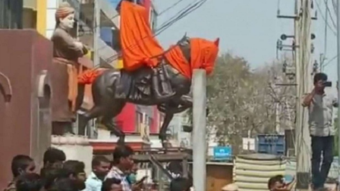 निजामाबाद: तेलंगाना के निजामाबाद (Nizamabad) जिले के बोधन शहर में सोमवार को दो समूहों के बीच छत्रपति शिवाजी महाराज (Chhatrapati Shivaji Maharaj) की प्रतिमा की स्थापना को लेकर विरोध प्रदर्शन और पथराव हुआ। इस बवाल की खबर लगते ही मौके पर पुलिस (Police) पहुंची और मामला शांत कराने की कोशिश की जिसमे एक कांस्टेबल घायल हो गया और उसे मेडिकल जांच के लिए भेजा गया है।