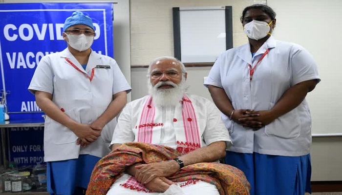 मोदी ने ली कोविड-19 टीके की पहली खुराक