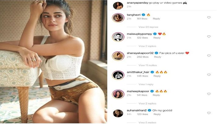 वहीं अनन्या की इन फोटोज की उनकी बेस्ट फ्रेंड सुहाना ने भी तारीफ की है और लिखा, “ओह माय गॉड। वहीं शनाया भी अनन्या की फोटो पर कमेंट किए बिना नहीं रह पाई। उनकी तारीफ करते हुए लिखा, “यू की फ़ेव पिक्स’’। वहीं इन दोनों के साथ बॉलीवुड के भी कई सितारों ने अनन्या की इस फोटो की तारीफ की है।