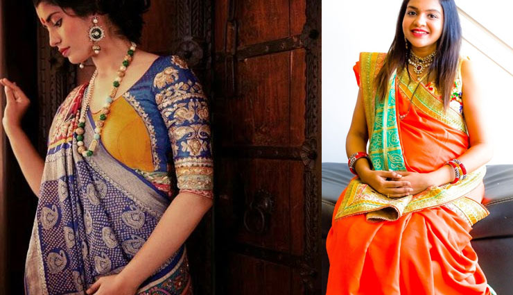अगर आप साड़ी को एकदम डिफरेंट तरीके से पहनना चाहती हैं तो आप दो साड़ी एकसाथ पहन सकती हैं। डबल साड़ी में लहंगे वाला लुक आता है जो देखने में बहुत खूबसूरत लगता है और आपको एक बहुत ही अच्छा और अलग लुक भी देगा। इसके लिए सिंपल तरीके से साड़ी पहनकर आप इसकी रंग की एक अलग चुनरी लेकर दूसरे कंधे पर शॉल की तरह डालें। ये आपको बहुत ही खूबसूरत लुक देगा।