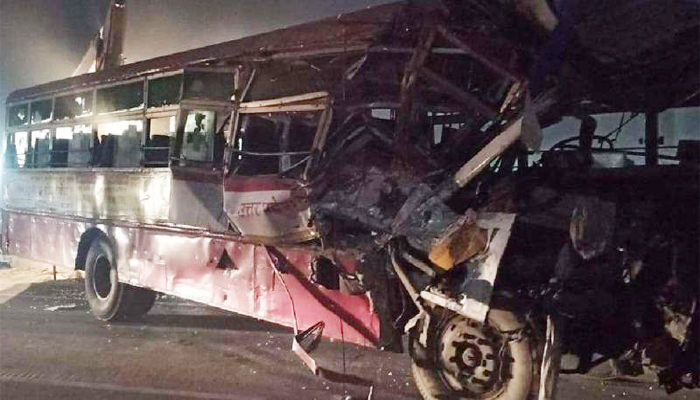 दो बसों की टक्कर में चालकों समेत तीन लोगों की मौत, छह अन्य घायल